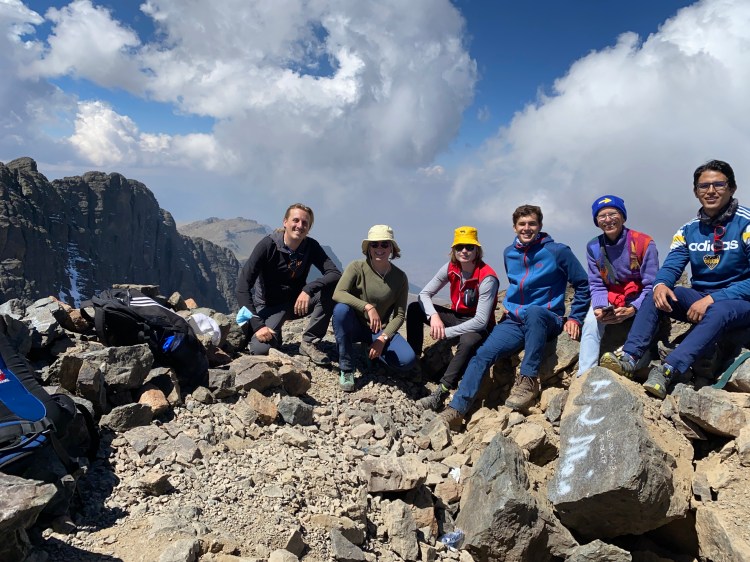 Nach ungefähr 1 1/2 h und ein paar Päusschen, um zusammenzuwarten, erreichten wir den Pico! Daniela ist früher ausgestiegen aber der Rest hat es diesmal – Jonas, Elias uns Daniel haben ihn schon einmal bestiegen – ohne großes Leiden geschafft und wir genoßen die wunderbare Sicht auf Cocha sowie die weitern Berge des Tunari Gebirges – einfach in den Anden… irgendwie echt unvorstellbar. Bei einer kleinen Streckung, hörten wir auch noch die ganze Geschichte von Santiago und dass er ein Mensch der Berge war, weshalb dieses Gebirge auch auf eine Art seine Heimat ist.