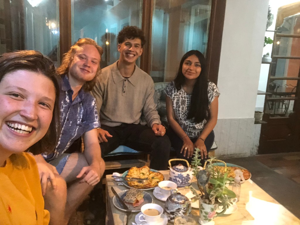 Am letzten Wochenende luden wir recht spontan wieder all unsere „Familias de acojida“, Schüler*innen und Lehrer*innen zu unserem „Fiesta de despedida“ in die Sprachschule ein. Es gab leckere Tacos und noch andere Köstlichkeiten (alle auch vegetarisch), die die Familias mitgebracht haben. Natürlich durften die Ansprachen sowohl von Carmen und Jaquces als auch von jeder*m einzelnen von uns nicht fehlen. Wir wurden sehr herzlich verabschiedet und es wurde uns auch gesagt, dass wir jederzeit wieder willkommen sind und sie immer ein offenes Ohr für uns haben werden. Ich für meinen Teil, habe mich dann für die herzliche Aufnahme allerseits und die wichtige und gute Vorbereitung auf Potosí bedankt, nicht nur sprachtechnisch sondern auch bezüglich der Kultur und Einstellung der Menschen hier in Potosí. Danach wurde noch richtig viel getanzt, was wir dann in einem Club weiterführten ; )