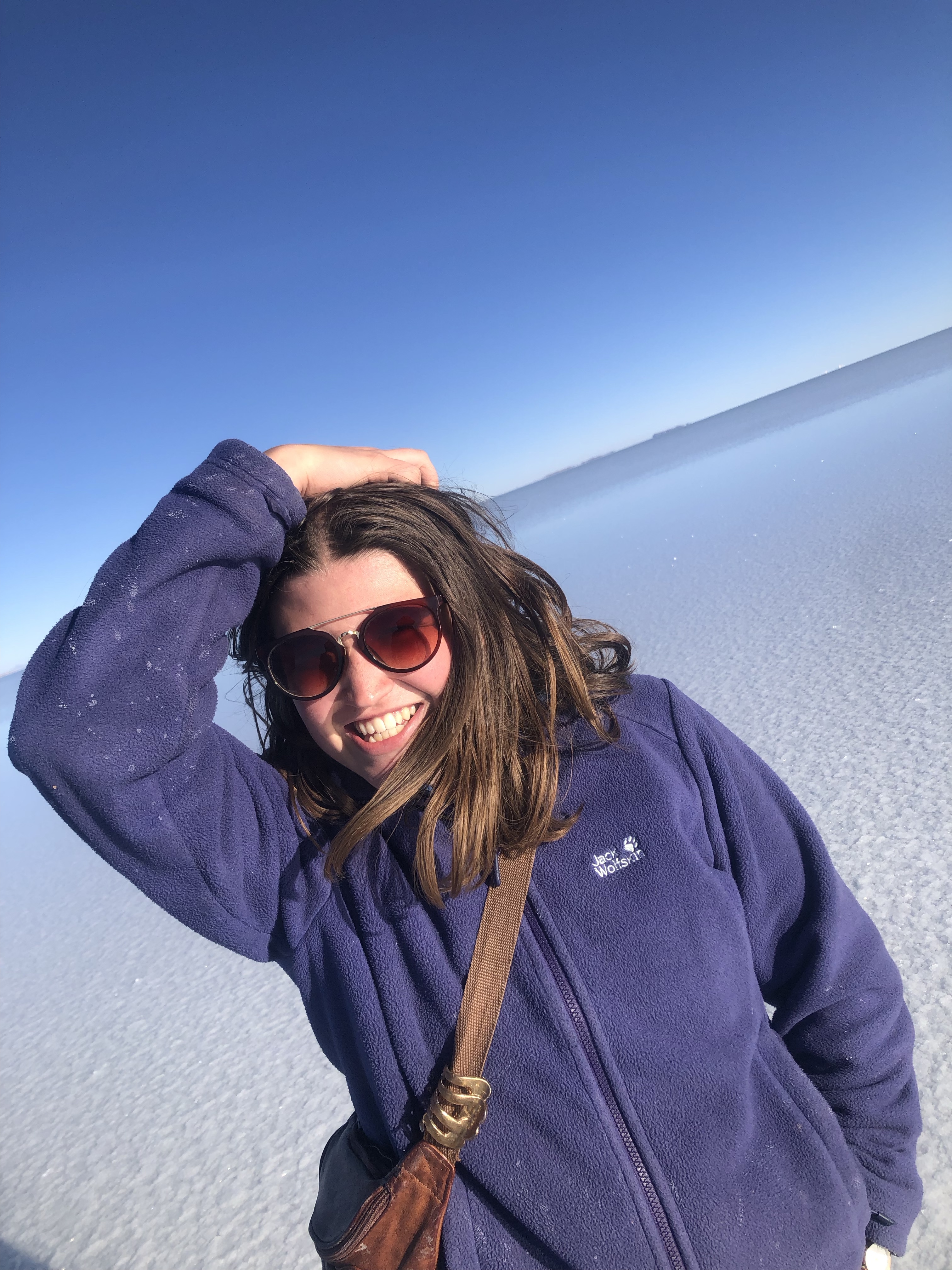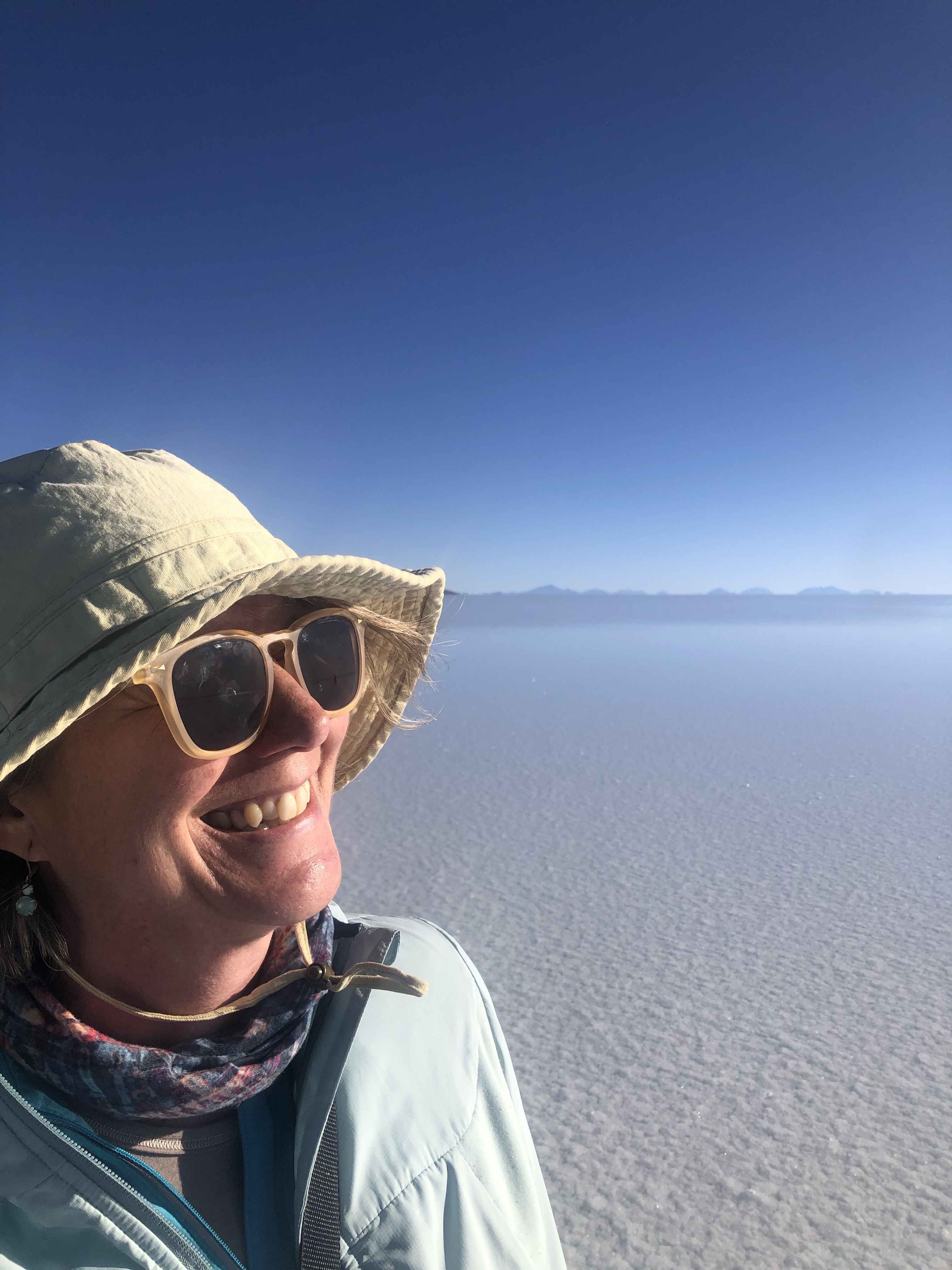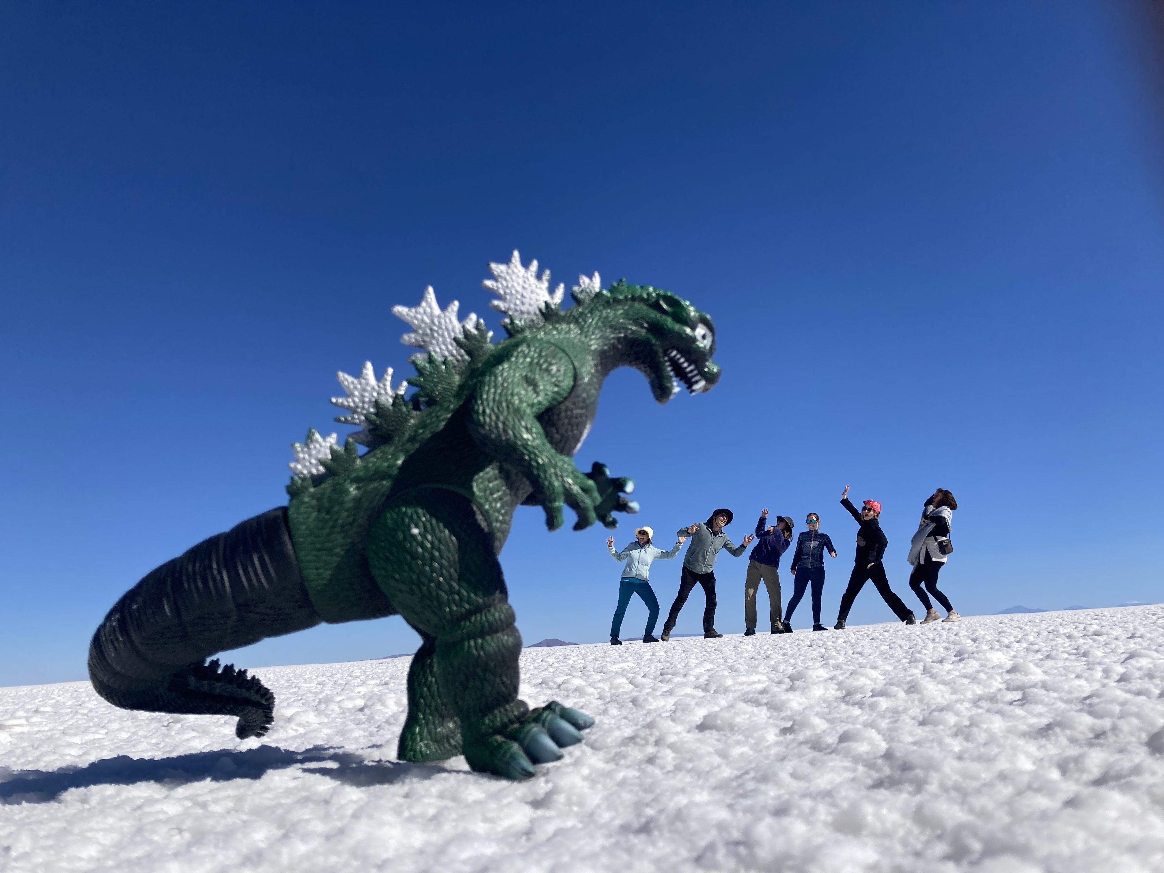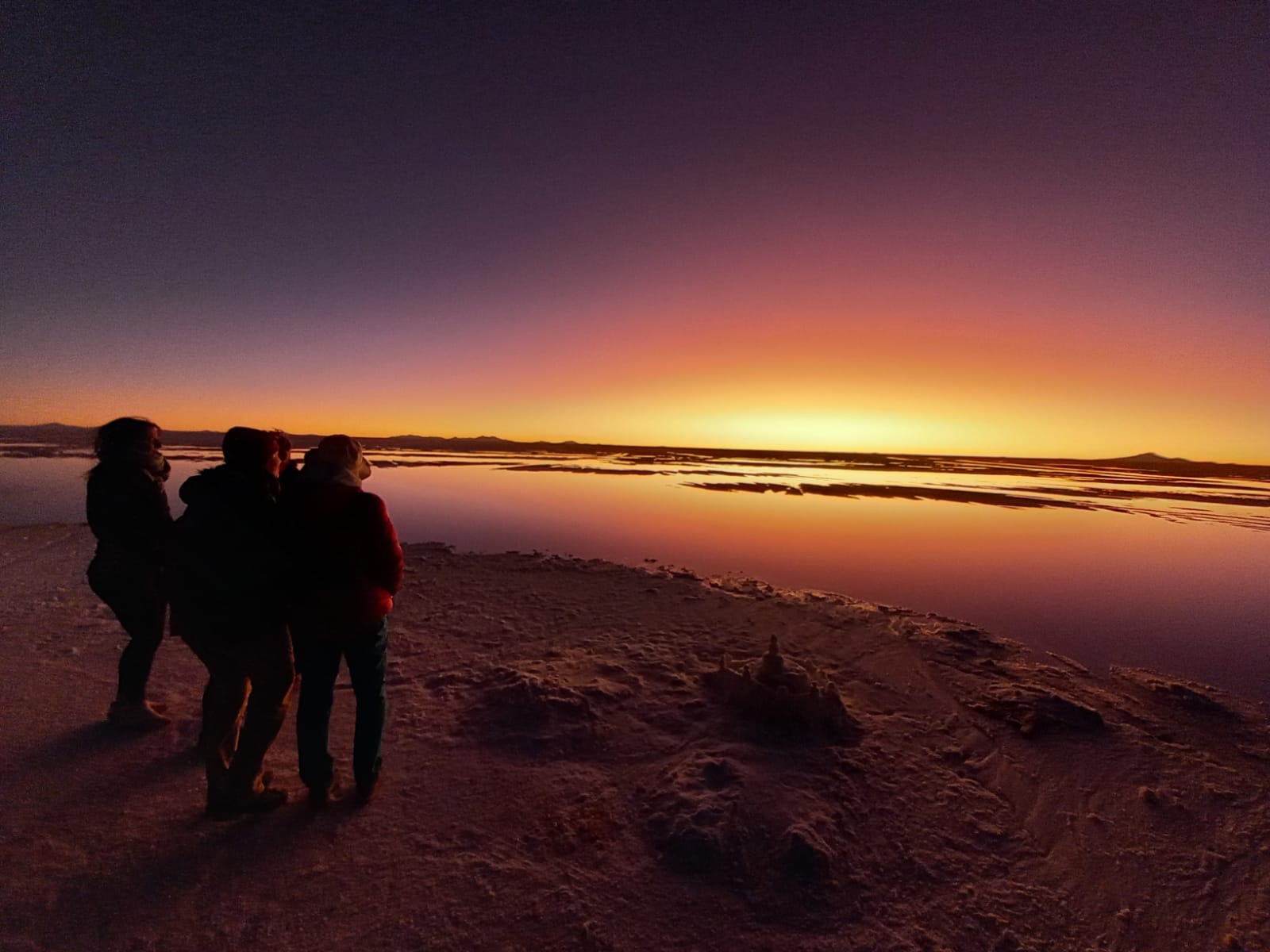 Den ersten Tag nach unserer etwas bolivianischen Ankunft – verspätet halt – gings mit unserem Fahrer und guía Franz/Francesco/Pancho ; ) in die Wüste aus Salz. Super interessant! Wir sahen diese unendliche Weite – machten natürlich die typischen Täuschbilder – den Spiegeleffekt, der dadurch entsteht dass eine Schicht Wasser auf der weißen Fläche steht und es sich somit spiegelt, machten dabei ein super cooles Video und als Highlight genossen wir noch bei Wein, Bier, Snacks und Musik den so fabkräftigen Sonnenuntergang…