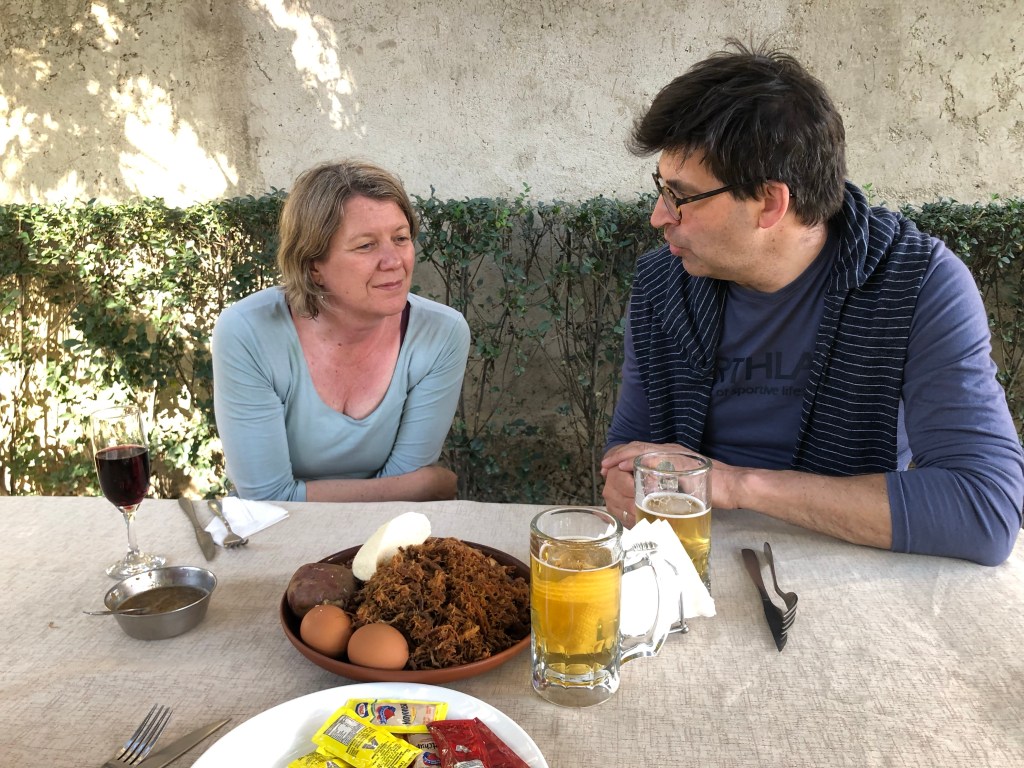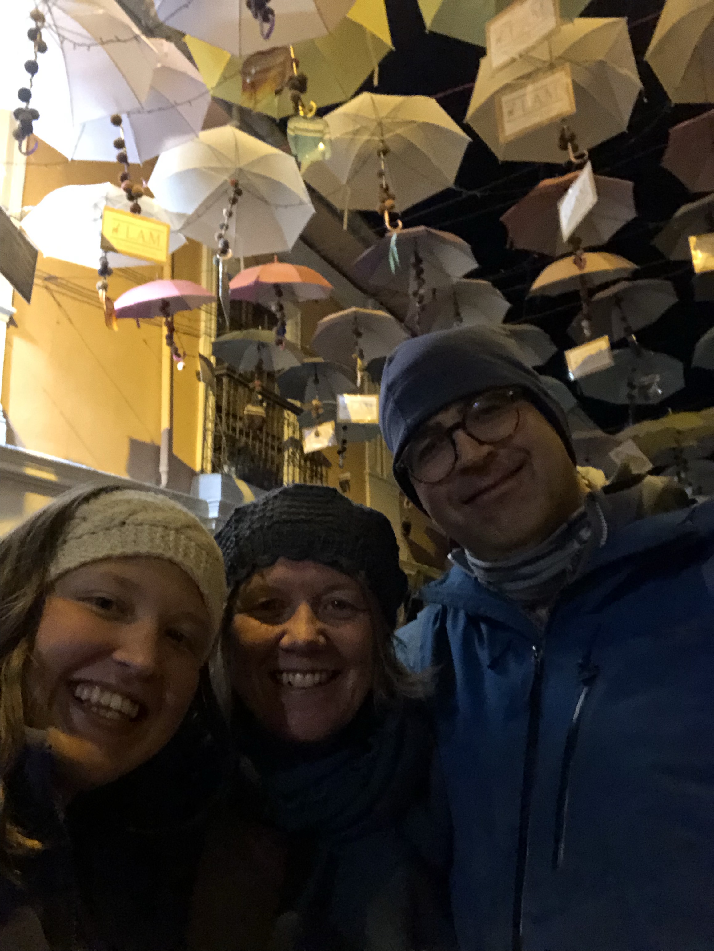 Deshalb waren Mama und ich zunächst den ersten Tag gemeinsam in der Stadt unterwegs, Café trinken und ein paar Orte hab ich ihr auch gezeigt. Außerdem hab ich versucht eine dritte Impfung für mich zu finden, denn die hätte ich gebraucht, falls wir wirklich nach Peru gefahren wären, doch das haben wir dann eh gelassen ; ). Papa konnte sich in der Zwischenzeit noch etwas ausruhen, doch zum Mittag waren wir dann gemeinsam bei uns zuhause. Elias hat schon eigentlich für den Vorabend – an dem wir dann leider echt spät angekommen sind – eine leckere Gemüse Suppe gekocht. Die durften wir dann zum Mittagessen genießen, genau das Richtige für Papa. Außerdem konnten so Mama und Papa einiges von ihrem Gepäck los werden. Sie haben nämlich von Hans – unserem „Chef“ aus Österreich – einige Dinge mitgebracht, Elias Judoanzug und auch von ihnen Schocki für alle ; )