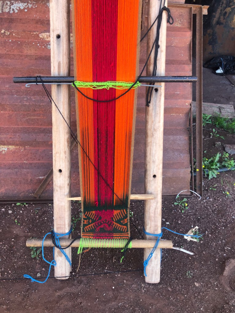 Danach besuchten wir eine Frau aus dem Dorf, die die Webkunst noch beherrscht und auch gerade an etwas gearbeitet hat. Sie zeigte uns wie es funktioniert und erst da hab ich realisieret wie die Tücher gemacht werden und was das für ein Aufwand ist. Die Jal’qa Kultur hat eine bestimmte Webkunst die nur aus zwei Farben besteht – schwarz und rot. Das sind genau die Farben die zum Papa als Staatsanwalt passen und somit auch perfekt in sein Büro – da hat er sich sowie der Frau eine Freude gemacht und eines ihrer Werke mitgenommen. Das war ihr erstes großes Geschäft seit Langem.