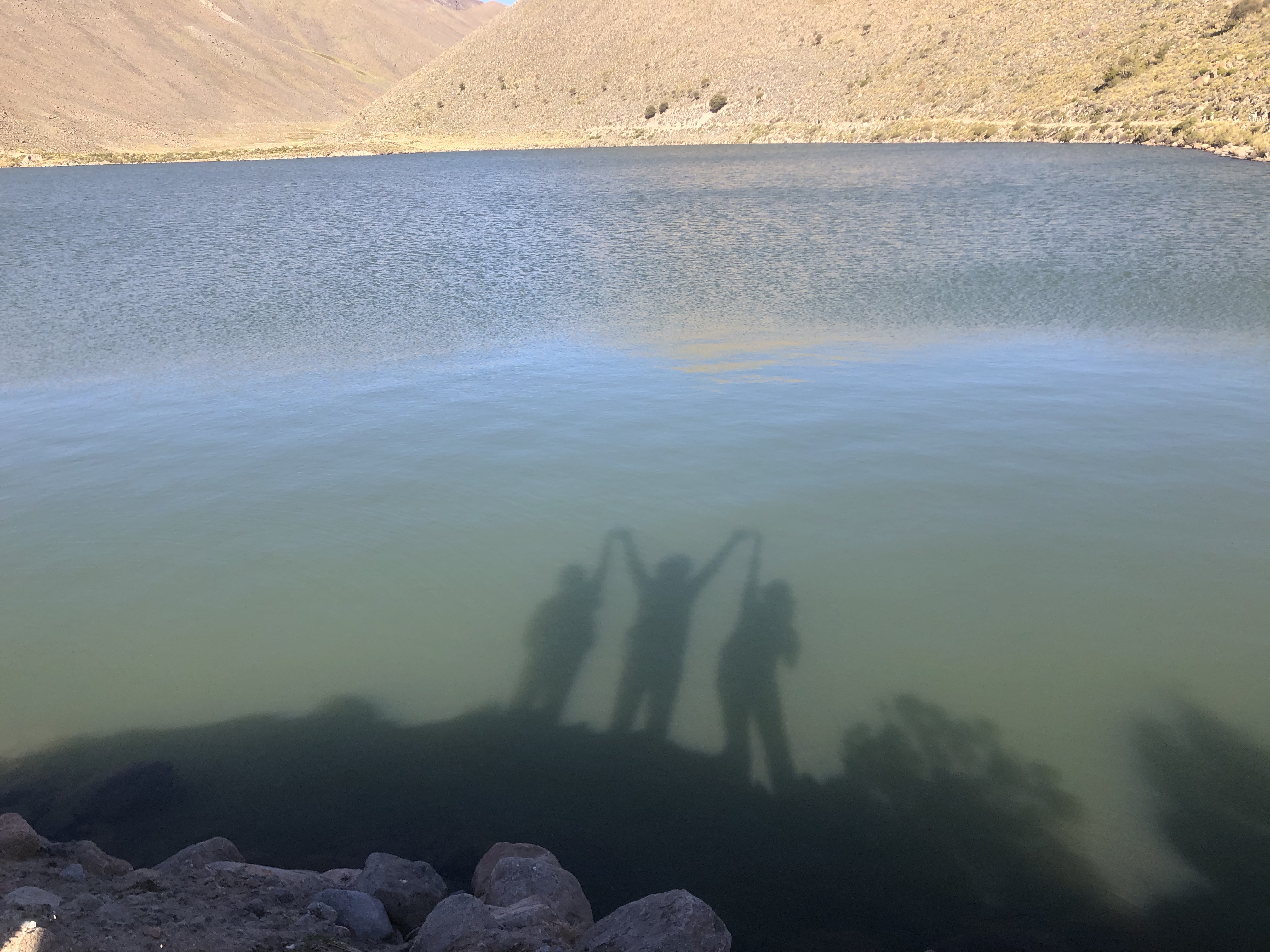 An diesem Abend kamen wir bei einem wunderschönen See umbegen von Bergen an und dort blieben wir auch für die Nacht. Dort gab es auch heiße Quellen „Augas termales de los Polques“ – sooo genial! Nach einem einfachen Abendessen – zum dritten Mal Nudeln ; ) – gings mit einer Flasche Wein auch schon ab ins Naturbad. Es war im Freien und auch im Hostel extrem unangenehm kalt, also der Weg war echt schon zach. Umso größer war das heiße Wasser die Belohnung. Mama konnte sich dazu leider nicht überwinden aber Papa, die drei Mädels und ich genossen es sehr vor allem unter diesem wunderschönen Sternenhimmel – so klar!!