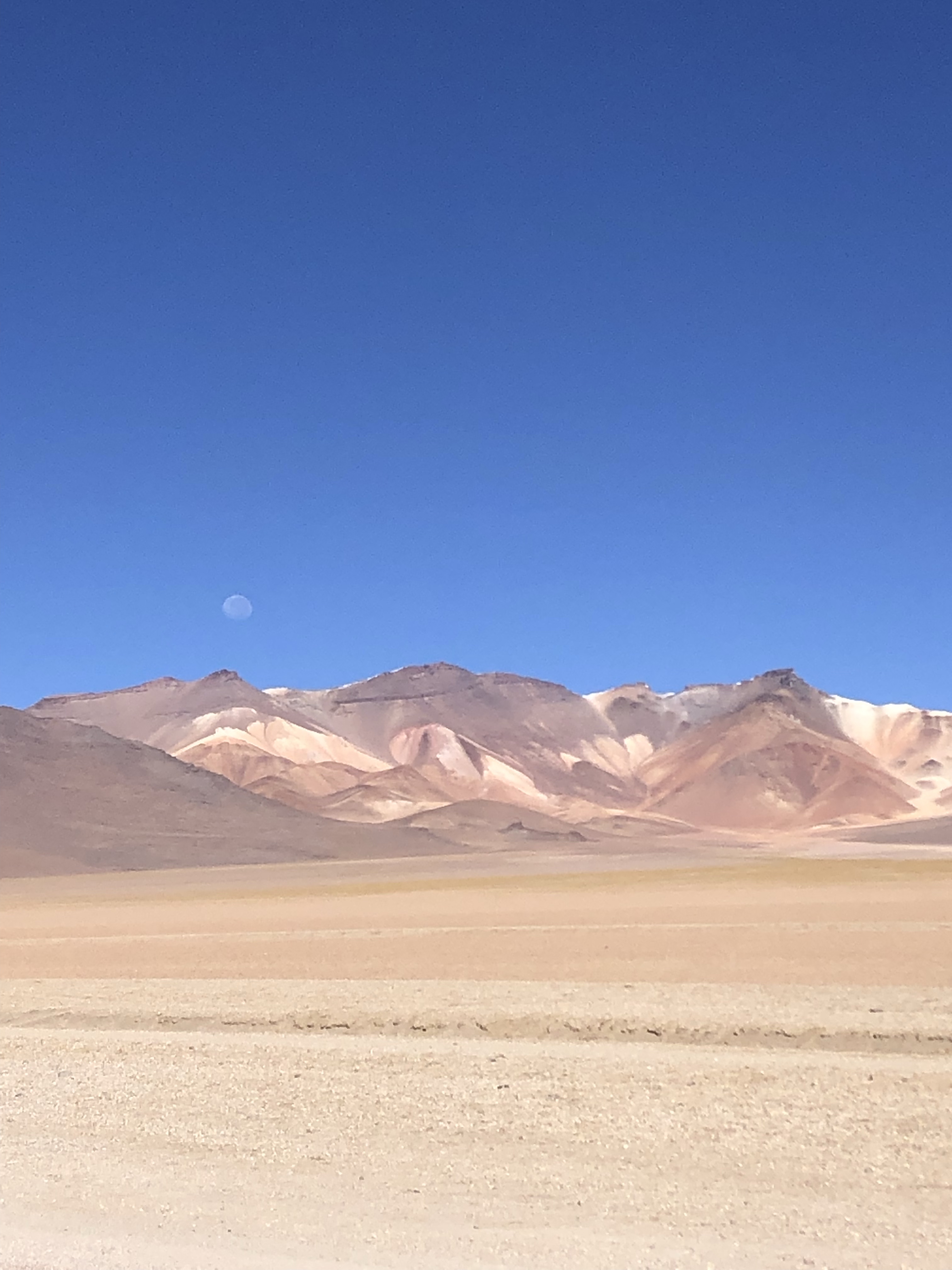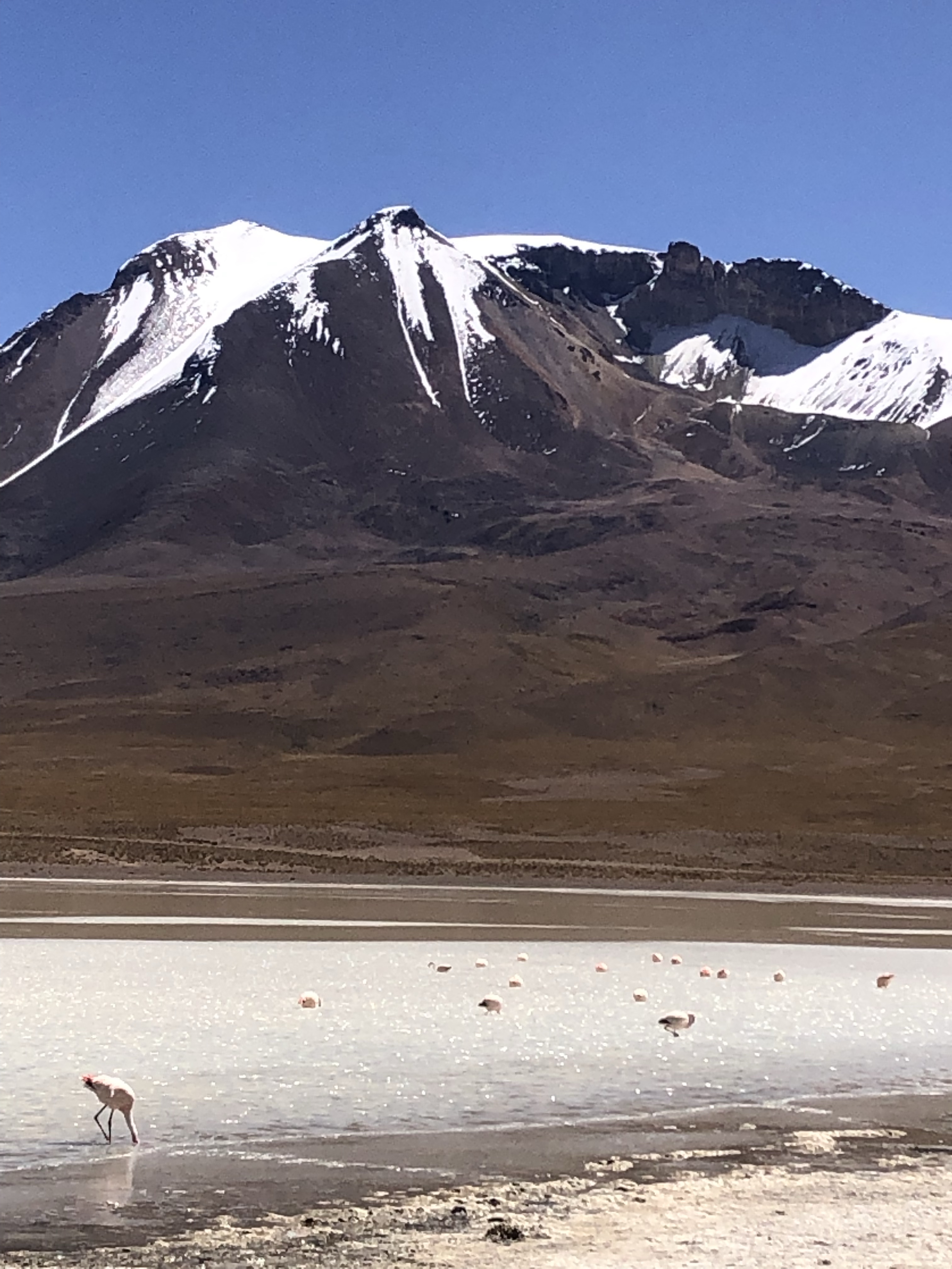 Der zweite Tag begann mit einer super langen Fahrt in Richtung Grenze zu Chile. Dort sahen wir dann nochmal so viele unterschiedliche Landschaften, Naturspektarkel und Tiere. Angefangen bei Wüsten, wo einfach nichts ist und wächst weit und breit, über unterschiedlichste Steinformationen, bis zu wunderschönn Seen mit Flamingos und beeindruckenden Farben. Dieses Gebiet das wir viel mit dem Auto durchfahren haben nennt sich „Los Lipes“. Ich denke wir machen das wieder mit den Fotos, seht selbst – auch die beeindruckenden Berge (Papa und ich meinten eh schon wir kommen mal zurück und dann besteigen wir einen davon ; ) )