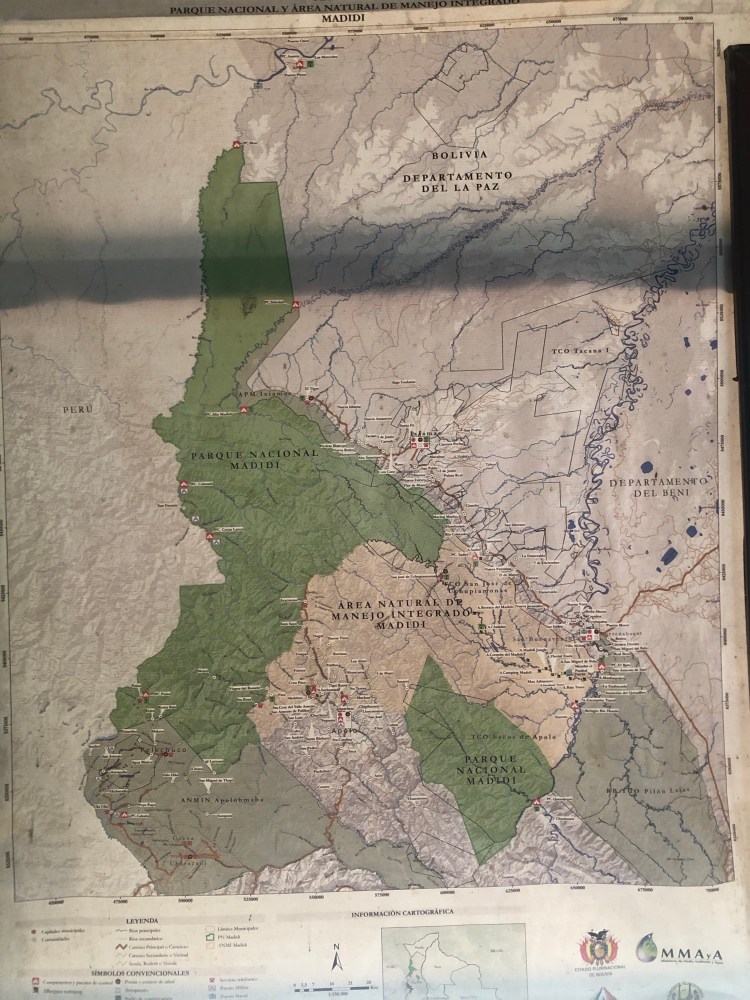 Er wurde erst 1995 zu geschütztem Gebiet erklärt und ist der Nationalpark mit der größten Biodiversität weltweit. Damit diese erhalten bleibt kämpften vor dreißig Jahren die Bewohner*innen der comunidad und weitere Wissenschaftler*innen gegen die Abholzung. Daher kommt auch der Name MADIDI, das ist eine Ameisenart, die zusammenhilft um einen größeren Feind oder ein größeres Problem zu bekämpfen.