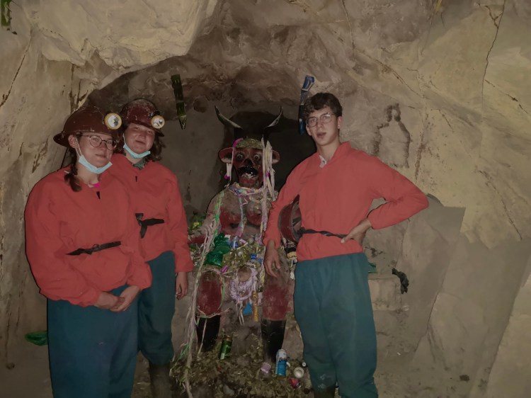 Nach einigem weiteren krabbeln und griechen kamen wir dann noch an einem zweiten etwas kleineren Tio vorbei. Da unserer guias auch selbst einmal in der Mine gearbeitet haben, konnten sie uns auch ein paar ihrer persönlichen Geschichten und Erfahrungen erzählen, was nochmals sehr interessant war…